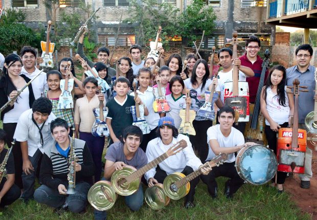 About ten years ago, a young environmental engineer named Favio Chavez arrived in the small town of Cateura, Paraguay. In the poor city, which is located next to a large landfill, most families survived by scavenging trash and many of the youth were addicted to drugs.  Chavez decided he would teach music to some of the kids in his free time. Once he ran out of donated instruments, he decided to take his love of music, his background in engineering, and his desire to improve the earth and the community around him, and created a novel idea: a “junk orchestra.”